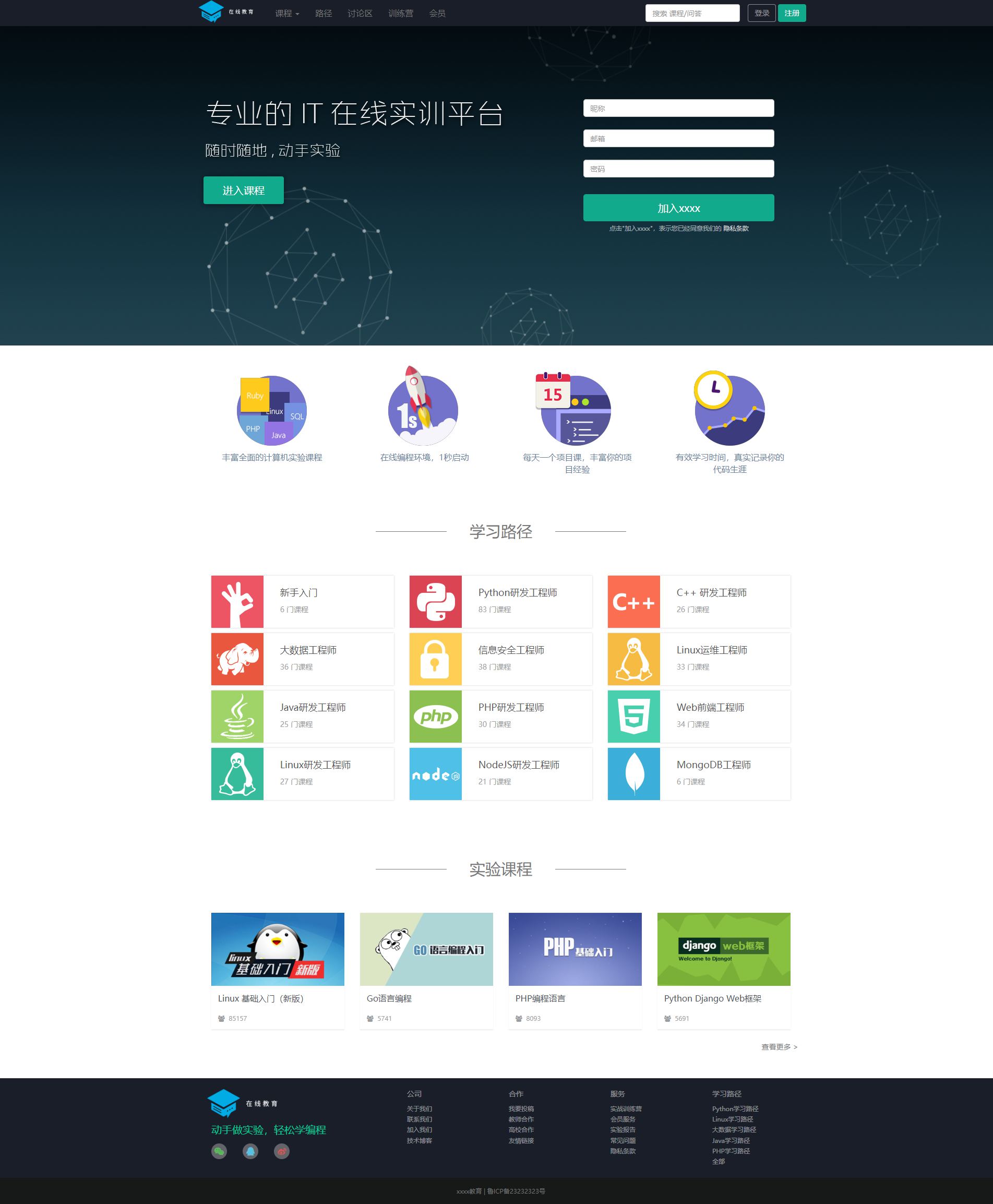 蓝色技能培训机构网站模板