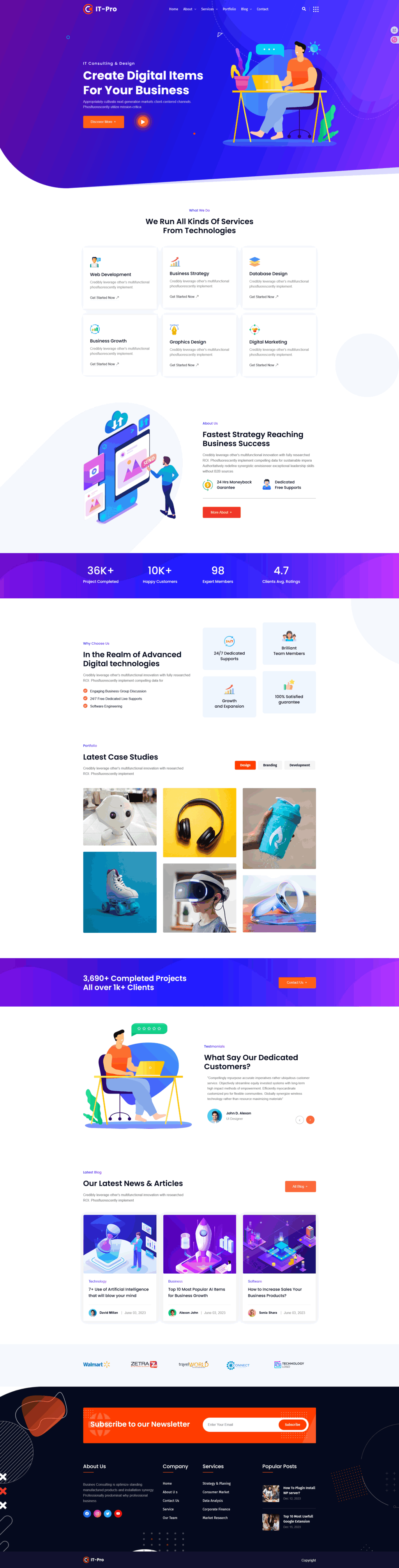 蓝色数字项目设计网站模板